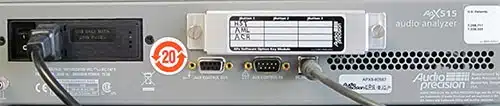 図1. APxソフトウェアオプションキーモジュールを備えたAPx515の背面パネル