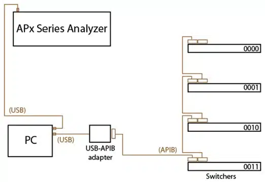 アナライザはAudio Precision製USB-APIBアダプタを使用してPCに接続する必要があります。
