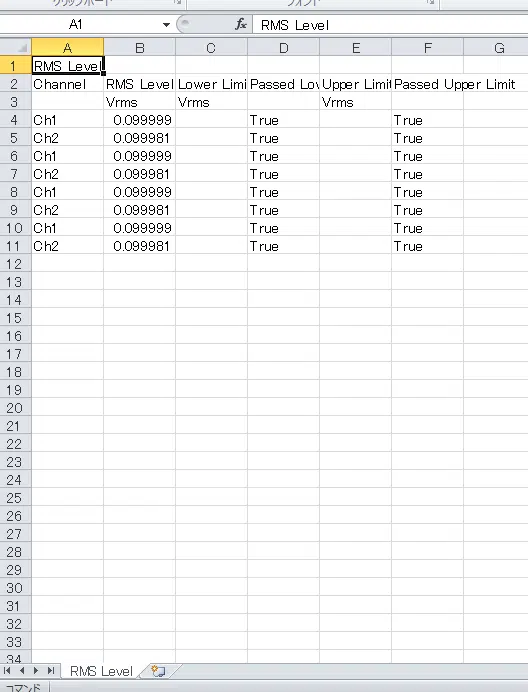 「Start Sequence」ボタンをクリックして測定を実行する度にエクセルへ結果が追加されます。