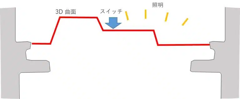 - 導光板やメカニカルスイッチが容積、厚みを要し、これにプリント基板の高さ位置を合わせる必要があり、無駄なすき間が発生