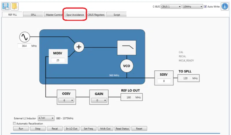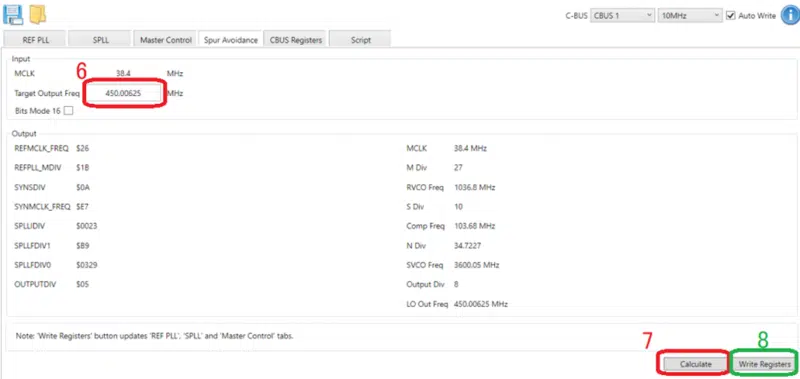 8. 「Spur Avoidance」タブ内の、「Write Registers」ボタンを押して下さい。