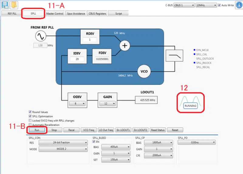 11. 「SPLL」タブ(11-A)を選択して、「Run」ボタン(11-B)を押して下さい。
