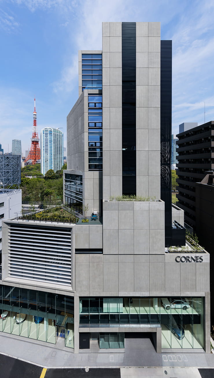 日比谷通りの芝園橋交差点を赤羽橋方面へ曲がり直進、約130m先右側にある11階建てビル(1階にFerrari/Bentleyショールーム、4階に総合受付)