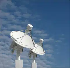 多くの場合、移動する航空機を追尾するトラッキングアンテナを使用します。航空機側のアンテナが固定アンテナとなるので、スペースに余裕がある地上側をトラッキングアンテナとして、通信距離を稼ぎます。恒久的に設置する固定型や、試験の時のみ設置する移動型があります。