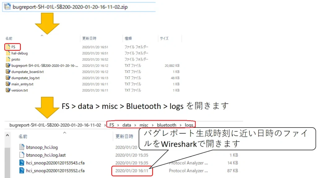 バグレポートのzipファイルを解凍します。