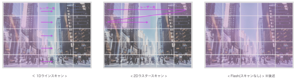 ソリッドステート方式と呼ばれることもあり、MEMSミラー方式やOPA方式などがあります。