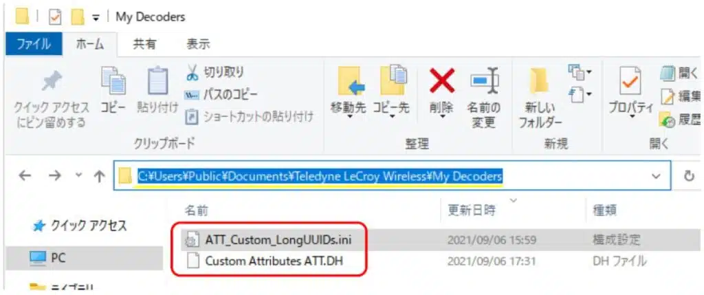 前述の2つのファイルを「C: Users Public Documents Teledyne LeCroy Wireless My Decoders」に配置します。