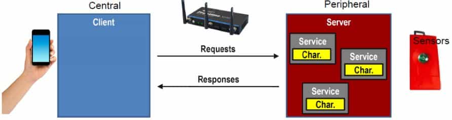 データのやり取りはGATT内のClien(Central)/Server(Peripheral)間で行われます。