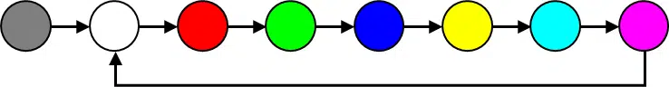 (起動時)なし→白→赤→緑→青→黄色→シアン→マゼンタ→白→赤→…の順で切り替わります。