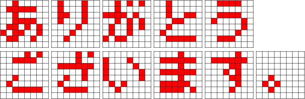 まず「ありがとうございます。」を下記8×8のピクセルデータとして準備します。