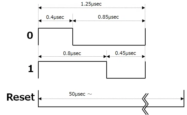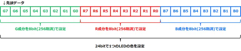 (g)(e)のNeoPixelプロトコルに従い、8×8のLEDを点灯・消灯