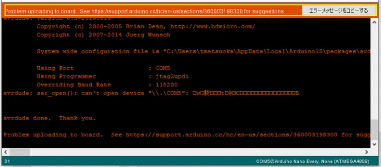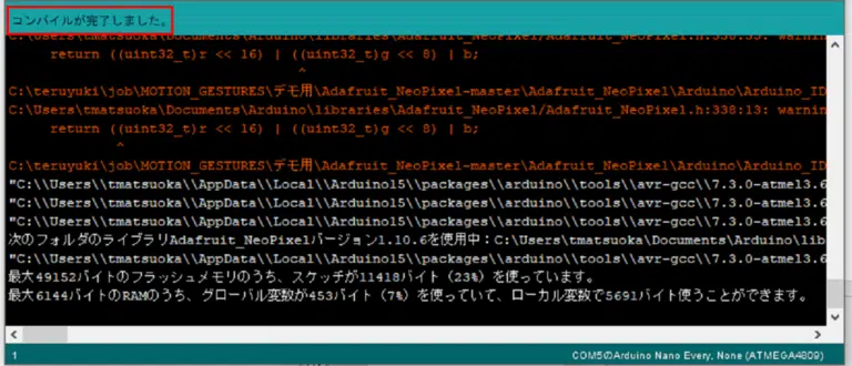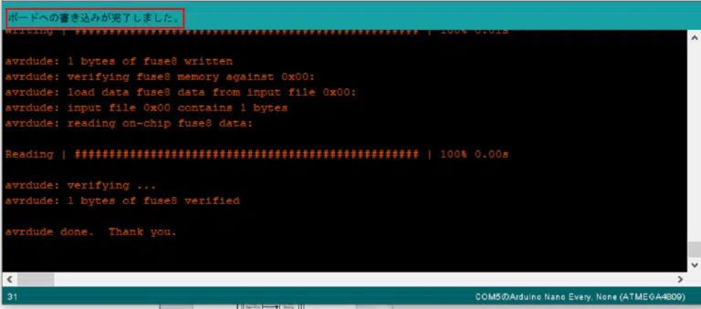 以上でArduino Nano Everyに対する書き込み・動作確認は終了です。これ以降、この作業は不要です。