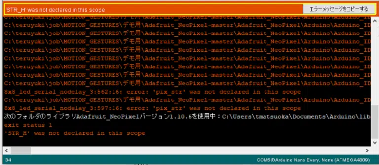 (e)(d)の制御データをLED制御用プログラムでシリアル受信し、LEDをNeoPixelライブラリのAPI経由で制御