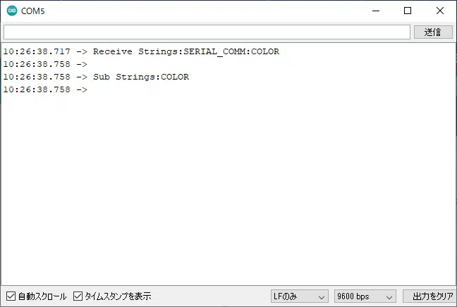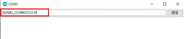 (9)下記図の示す箇所に「SERIAL_COMM:COLOR」とコマンド入力し、Enterキー入力または「送信」をクリックします。