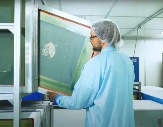 フィルムの上に、配線用の導電性Agペーストや、絶縁用の誘電体ペースト、装飾用(あるいは照明を調整するための)塗料などを印刷していきます。