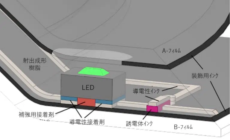 接着剤は下記2種類を使用します。(これらのような構造は、いずれもTactotek社独自技術となっています。)