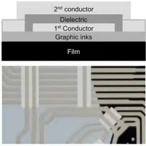 配線が交差している部分は、間に絶縁用の誘電体ペーストが塗布されます。