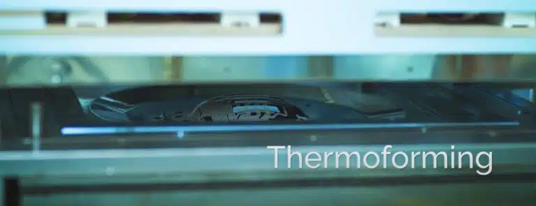 フィルムを立体的に変形(熱成形、フォーミング、賦形)させます。(動画1:50ごろ)