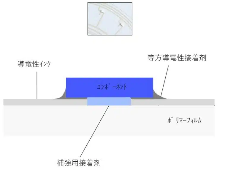 - 配線と接続するための導電性接着剤(Conductive adhesive)