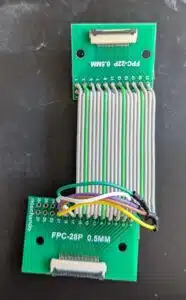 試験用に、28pin FFCコネクタと22pin FFCコネクタ、フラットケーブルを用いて、下図のようなボードを作成してみました。