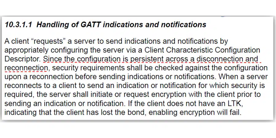 - Client Characteristic Configurationについて仕様では「切断や再接続においても保持されるもの」という記載がある。