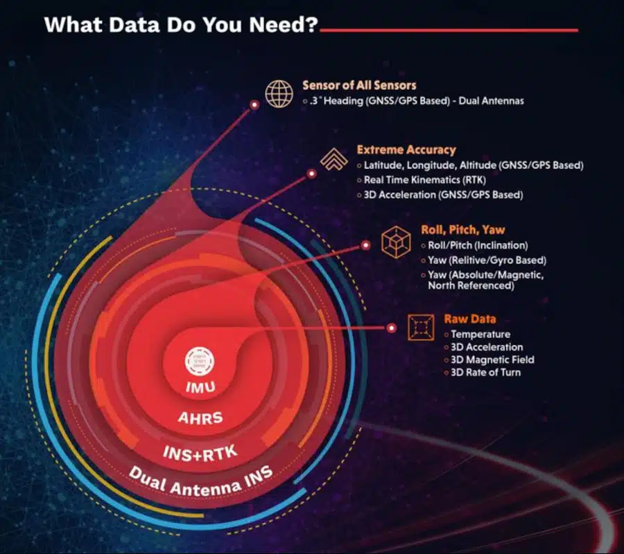 正しいセンサ、選んでますか?『IMU』『AHRS』『INS』『RTK』『Dual Antenna INS』など、必要なデータ・情報をもとにしたセンサの選び方