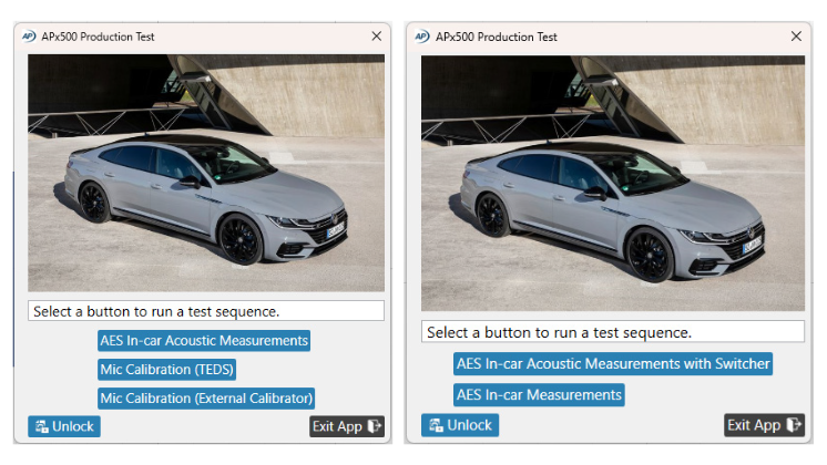 車室内音響の評価には多くのステップが必要ですが、Audio Precisionではこれらがシーケンシャル(連続的)なプログラムとして専用プロジェクトファイルに集約されています。ユーザーはマイクロホンのキャリブレーション後、スタートボタンを押すという最小限の操作のみで測定を完結できます。