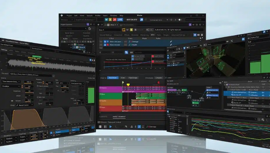 Wwise Automotiveは、車載システムに実装されることによって、車内のオーディオ環境を一元管理しながら、車内外のあらゆる入力に基づいた動的なサウンド再生を実現する、自動車産業向けのデータ駆動型オーディオソリューションです。