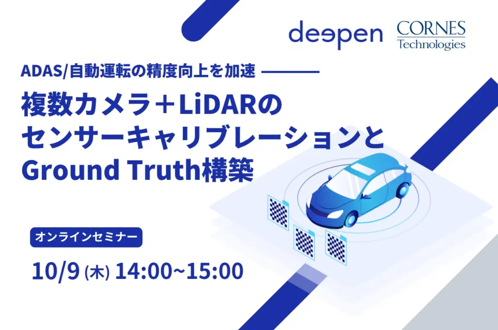 10/9(木) 開催「ADAS/自動運転の精度向上を加速 ― 複数カメラ+LiDARのセンサーキャリブレーションとGround Truth構築」オンラインセミナー
