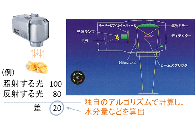 食品の水分・脂肪分・油分・タンパク質などの主要成分や色を非破壊・非接触で同時測定