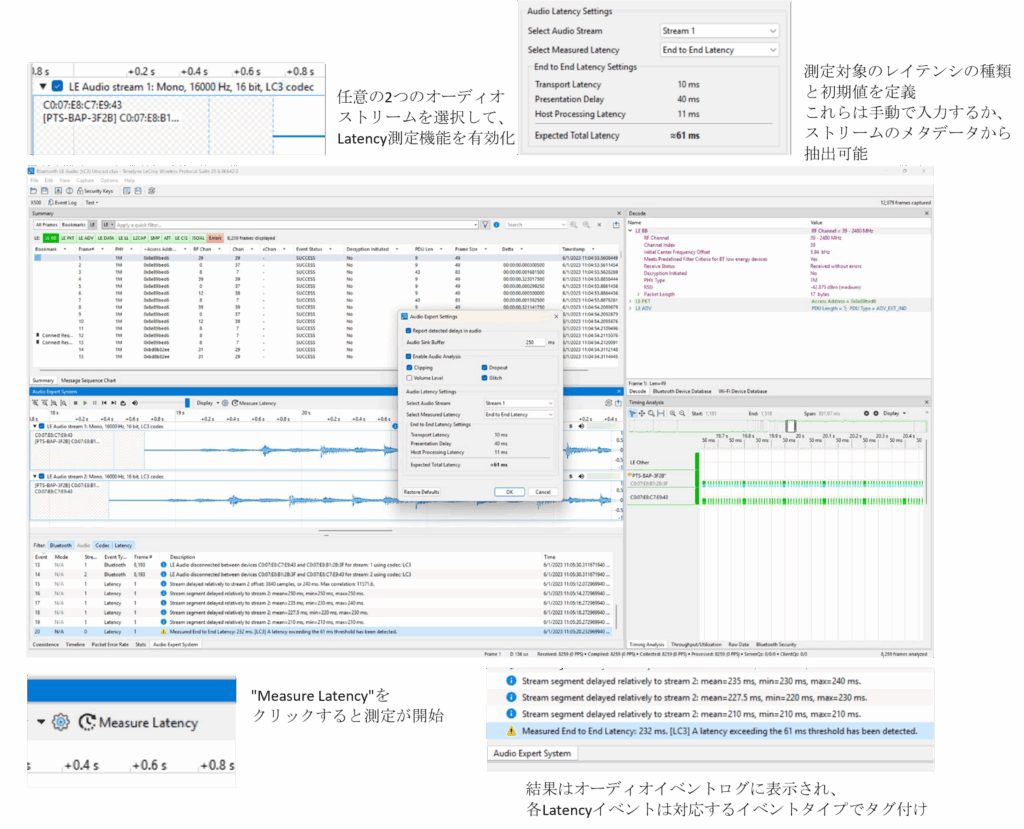 ✔️ End-to-end遅延、 Transport遅延、Presentation遅延、Audio processing遅延測定