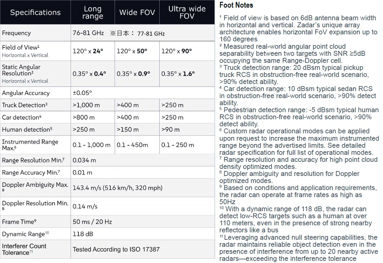 Zadar社のレーダープラットフォームはオートモーティブグレードで、過酷な環境下において少ないメンテナンス頻度で使用できるよう設計されています。