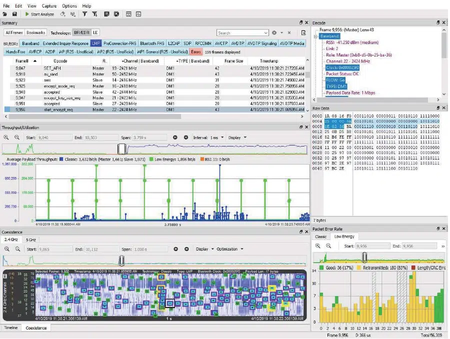 データ取得と信号復調、フィルタ、結果表示、エラー検出などのパフォーマンスを同時に解析できるほか、Message Sequence Chart 機能、各チャネルのパケットエラーレート表示機能といった多様な機能も搭載しています。